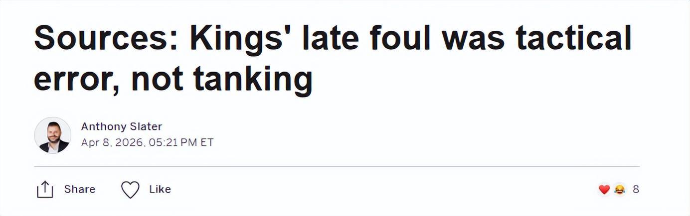 赛后终场哨响,这一失误被进一步放大:勇士前锋格林在长篇谈论NBA摆烂乱象时,暗指国王此举就是为了故意输球。